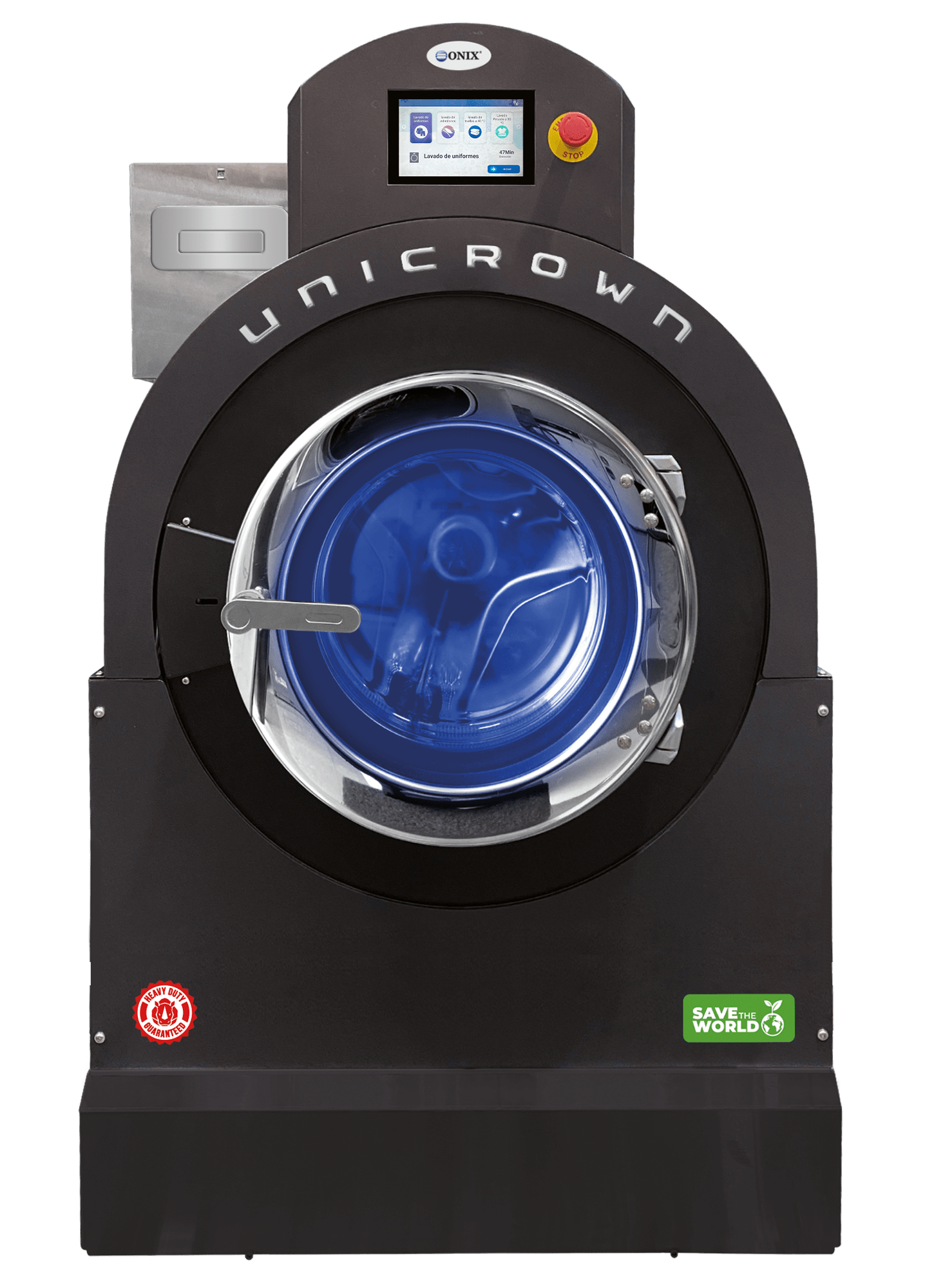 Con dispensador para detergente y químicos líquidos.
