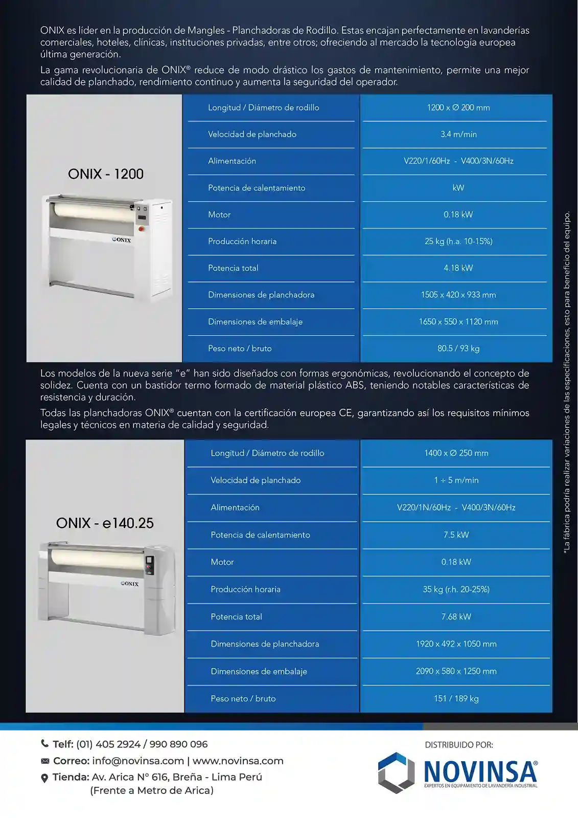 NOVINSA, te presenta la planchadora de rodillo de diferentes tamaños, ideal para tratar ropas planas como manteles, sábanas, fundas de almohada, etc. De uso fácil y fiable. Con capacidad de producción de 25 – 30 kg de ropa por hora.